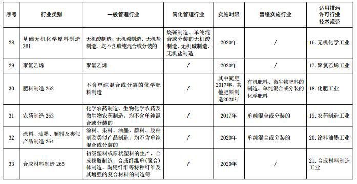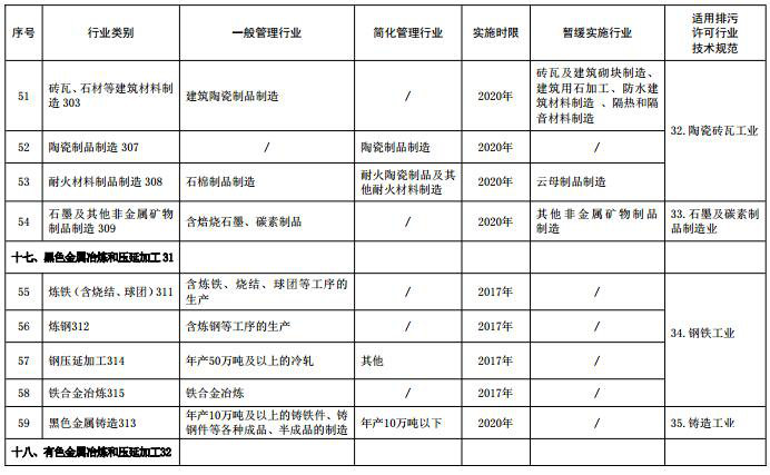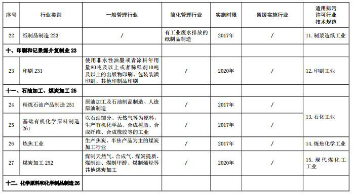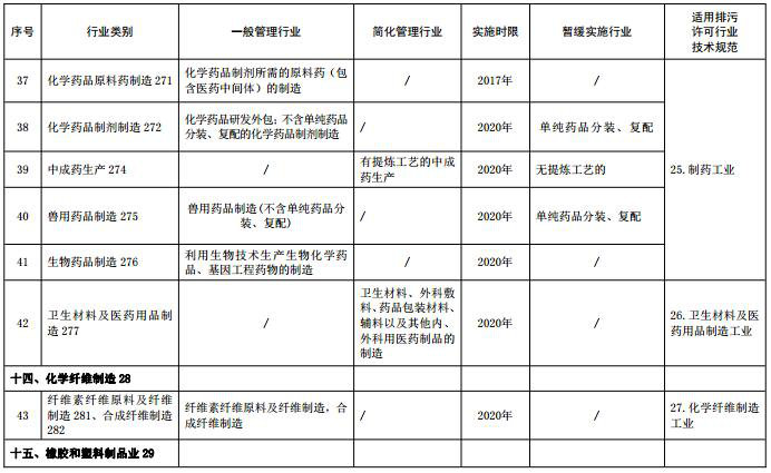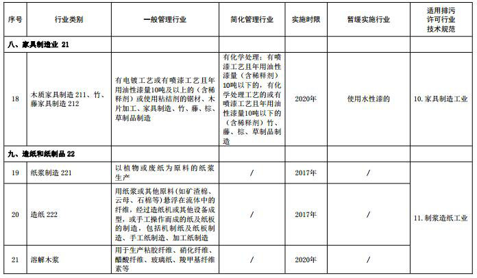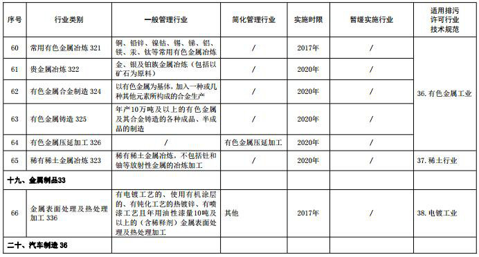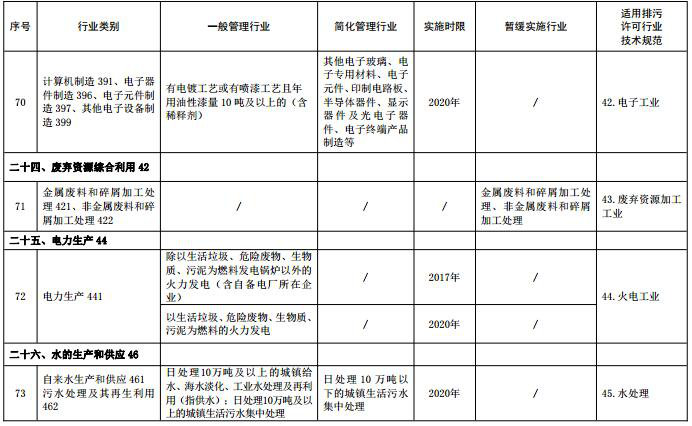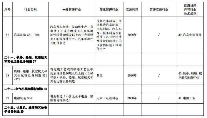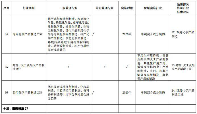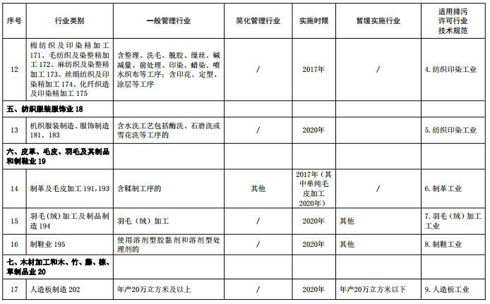 (注:名錄表格中“適用排污許可行業(yè)技術(shù)規范”主要用于環(huán)保部門(mén)對行業(yè)排污許可技術(shù)規范制修訂立項時(shí)提供參考依據,“行業(yè)類(lèi)別”名稱(chēng)后的數字為《國民經(jīng)濟行業(yè)分類(lèi)》中代碼,名錄發(fā)布時(shí)刪除)