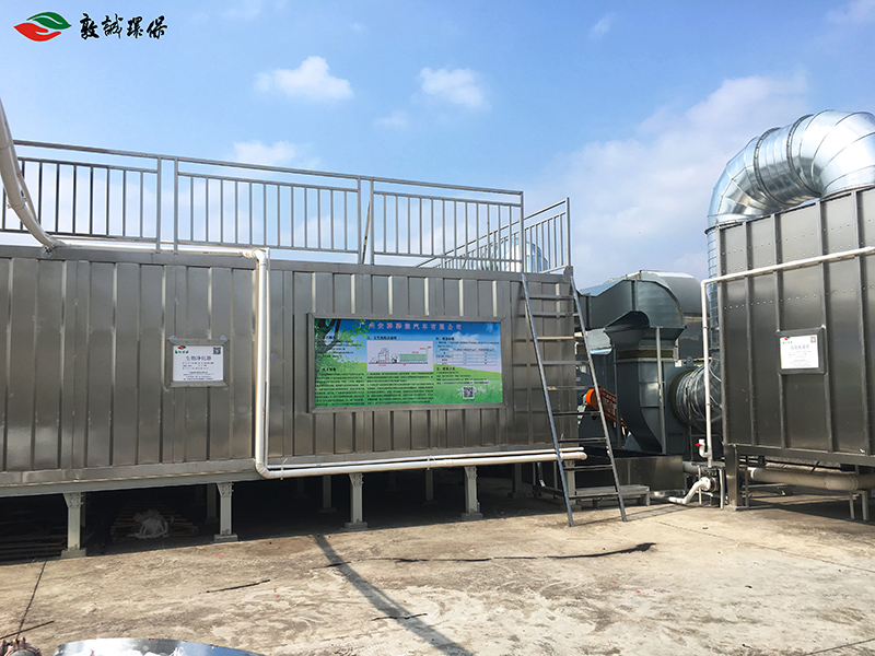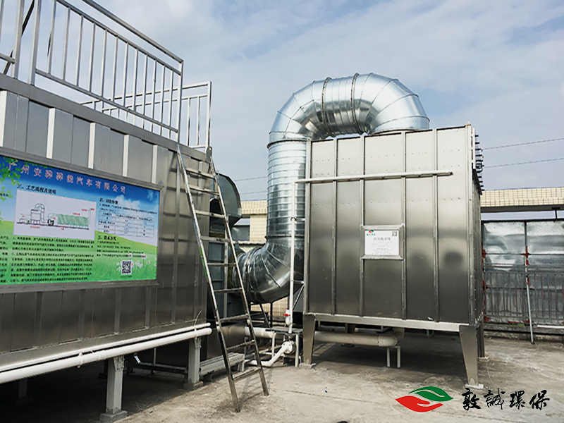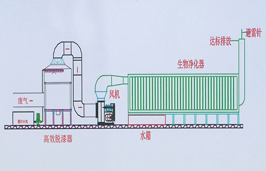 廣州安驊驊能汽車(chē)有限公司在生產(chǎn)過(guò)程中產(chǎn)生的有機廢氣來(lái)源于產(chǎn)品在涂裝過(guò)程中揮發(fā)的有機氣體。所散發(fā)的揮發(fā)性氣體含油笨、甲苯、二甲苯、醇醚類(lèi)以及脂類(lèi)等有機化合物。該類(lèi)廢氣若采用傳統噴淋、等離子、光解等技術(shù)均難以將其徹底凈化,且運行時(shí)難以保證處理效果。鑒于此,廣東敦誠環(huán)??萍加邢薰境浞掷矛F有成熟工藝,經(jīng)過(guò)計算機模擬和實(shí)踐,組合設計出一種專(zhuān)門(mén)針對該廢氣的凈化處理工藝,即“高效脫漆+生物法凈化器”,該工藝可以徹底解決現有的技術(shù)難題。